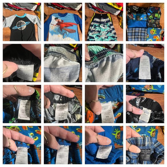 ALL items have been checked for signs of wear and tear and ALL are clean of stains. Smoke free, cat free home. Top row of photos show the item, the second row shows the brand/size of the item (a couple items do not have a second picture, they are to be assumed M 8-10). Many items are like new, just washed and never worn.