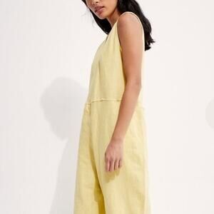 Back beat co company Yellow Linen Reversible Linen Jumpsuit size small Nwot. Measurements laying flat chest 19 inches across inseam 22 1/2 inches . Oversized fit.