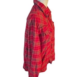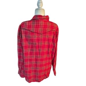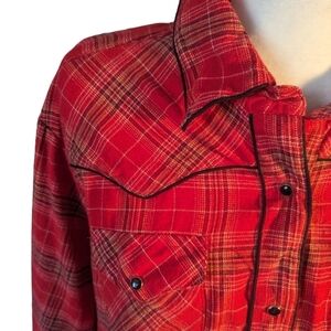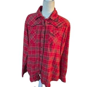 Back in The Saddle Western Pearl Snap cowgirl red Plaid Shirt Embroidery sz XL