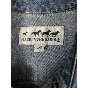 Back in the Saddle Blue Denim Snap Horse Buttons Western Long Sleeve Shirt L
