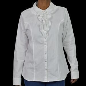 Back in the Saddle White Shirt Equestrian Cowgirl Ruffled Fitted Tailored Large