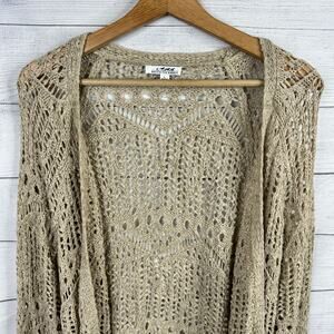 Back in the Saddle Womens Large Open Knit Crochet Cardigan Western Bohemian