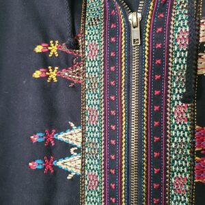 Back in the Saddle Aztec Tribal Embroidered Zip Front Jacket sz XL