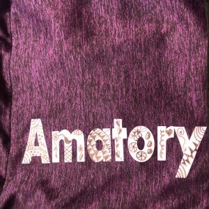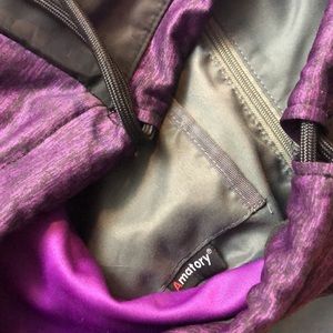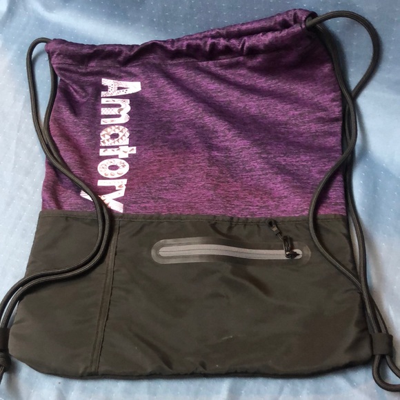 Purple back pack with draw string closure. Amatory is the brand