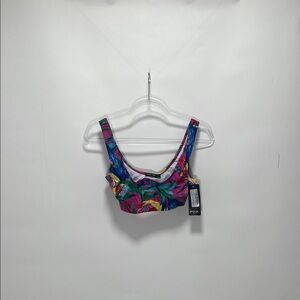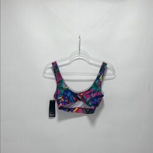 Bold bikini set with a mix of vibrant colors. Perfect for a beach day.