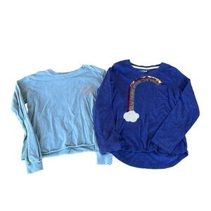 9 Piece Back To School Clothing Bundle. Mixed brands and pieces, including long sleeved shirts, Sweater/sweatshirts, jeans and pajamas. All are size medium (jeans are size 8). All are in good preowned condition with light wash wear from normal use. No holes or tears, no staining. Brands include:
