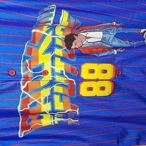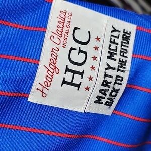 Back to the Future Marty McFly Pinstripe Baseball Jersey Size Large NWT 1988 Classic Michael J. Fox Movie Flashback #88 Dolerean Red Blue By Headgear Classics Nostalgia Uniique Urban Streetwear