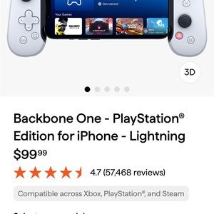 Backbone controller, used once. Works perfect, comes with box but not the adapter which is a iPhone charger.