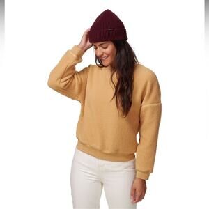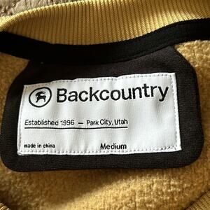 Camel colored casual fleece pullover from Backcountry. This provides warmth but also has breathability. This is in great used condition, no flaws or damage to note.