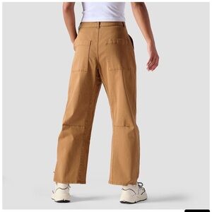 This is a high waisted pant that pairs well with crop tops and has a wide leg in the trending barrel leg shape.