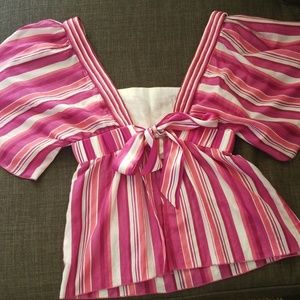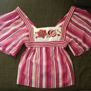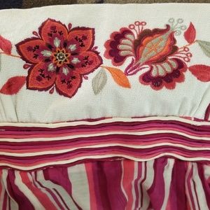 Light weight perfect for summer 68% cotton 32%silk! Embroidered floral front. Backless with silk ties silk piping around neck and waist.