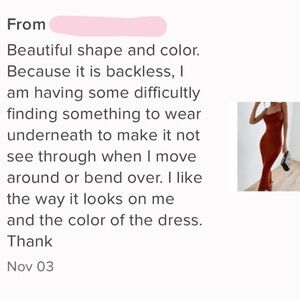 @erikastula Thank you! I’m very flattered! This isn’t a dress that would hide flaws, it will not hold you in unfortunately. The fabric isn’t thick enough to do so. Otherwise it’s a beautiful dress, very flattering at the bust and back 💚