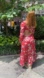 Backless Hollow Out Maxi Dress features a maxi-skirt length, a deep v-neck, side cutouts that lead into a backless style, lantern sleeves, and a floral print. Size M. Composed of synthetic fiber. Excellent condition.