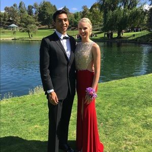 Alterations were made to the inside lining of the mesh front with a nude fabric as well as an additional secure neck clasp.