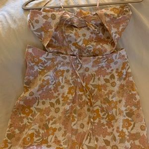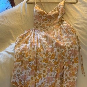 Beautiful vintage floral print. Backless with long slip in front.