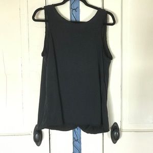Drapery backless tank with rugged edges. Could be worn with the opening in the back or front! Cute with a cami or bralette!