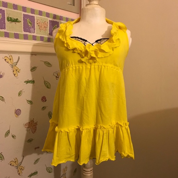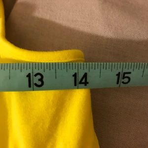 Brand new and never been worn before. Took the tags off but never decided to wear it. It also has one of those built-in bras so it has that extra piece of elastic inside that goes all around. It’s 14 inches from armpit to armpit and 16 inches from the lowest part of the v-neck to the bottom of the shirt. If you have any questions, please feel free to ask! :)
