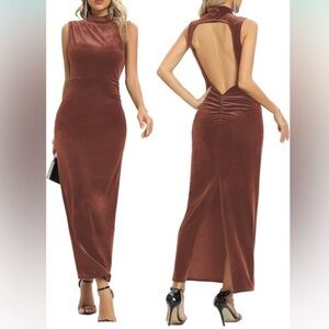 Backless Velvet Formal Bodycon Maxi Dress Apricot Pink