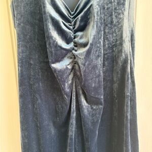 Perfect for any occasion, elegant design and soft fabric ensure a flattering fit. Halter button neck, backless, ruched, back slit. Pretty dusty blue color. Also available in pink.