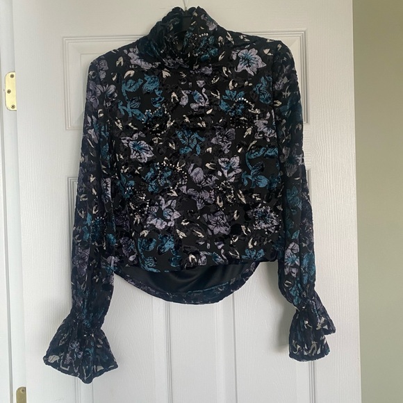 High neck, backless velvet long sleeve top. Brand is Shyanne, size S, great condition, one neck button slightly loose.