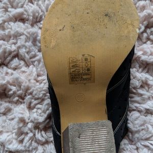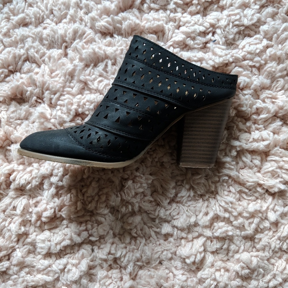 Gently worn, super comfortable slip on booties with small block heel and cut out pattern