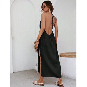 Backless high slit maxi dress halter neck minimalist boho maxi dress black