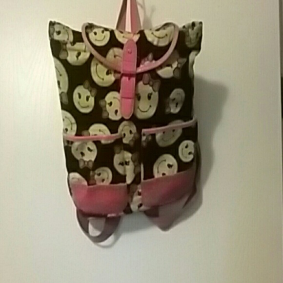 Black with smiley faces,bright pink this bag is so cute and I great but I allredy have enuf backpacks