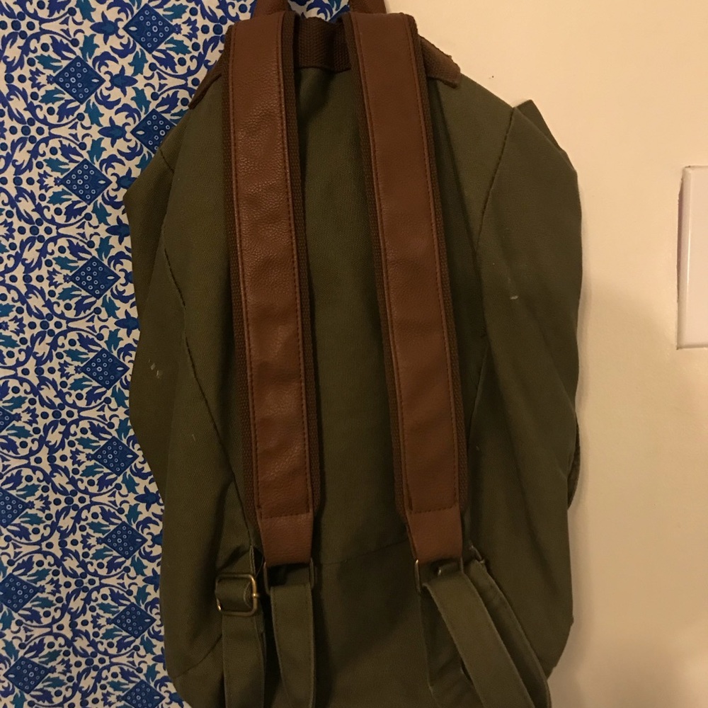 Olive green with brown accent straps, very roomy to fit lots of things in. Rarely used this bag.