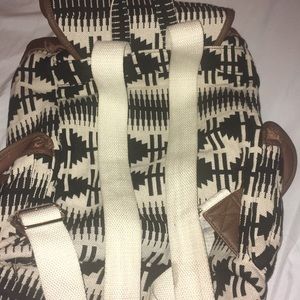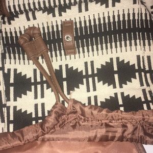 Aztec print // small stain on back right strap // has 3 exterior pockets and 1 interior zipper // has a drawstring and snaps to close