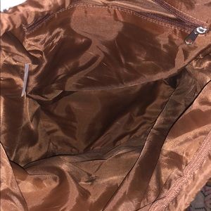 Cute backpack! Has a pocket on each a side, and one big one in the front. Very roomy!