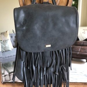 NWOT grayish/black vegan fringe backpack. Gold hardware. Smoke free home.