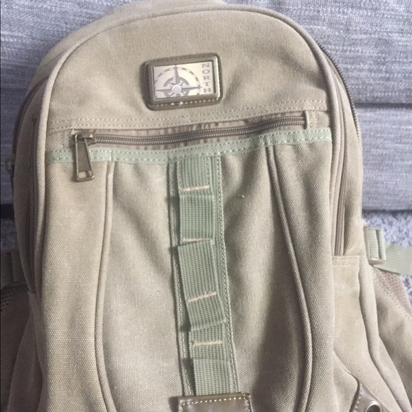North Backpack. Never used. 4 pockets. 2 side mesh pockets. Cushioned straps.