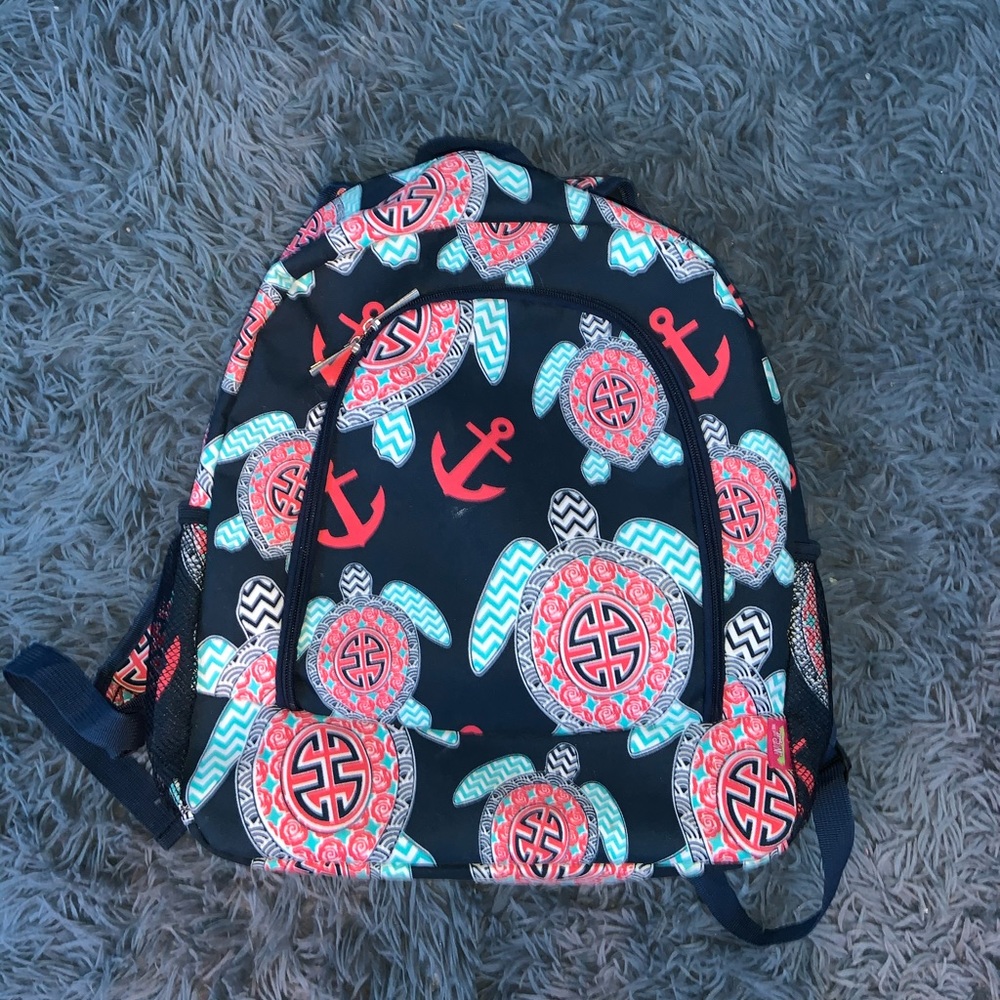 Super cute, Navy Blue backpack with turtles. I can’t exactly read the tag but I believe it says N.Gil