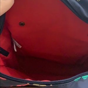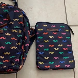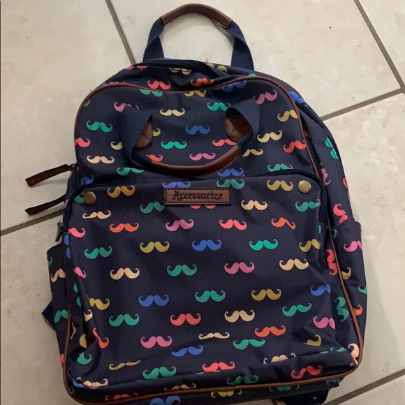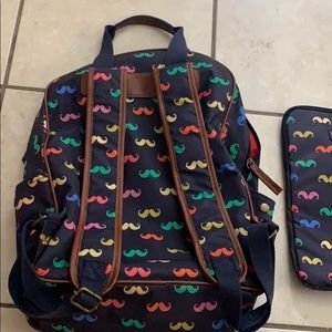 Sturdy backpack with colorful moustache pattern, comes with a pouch