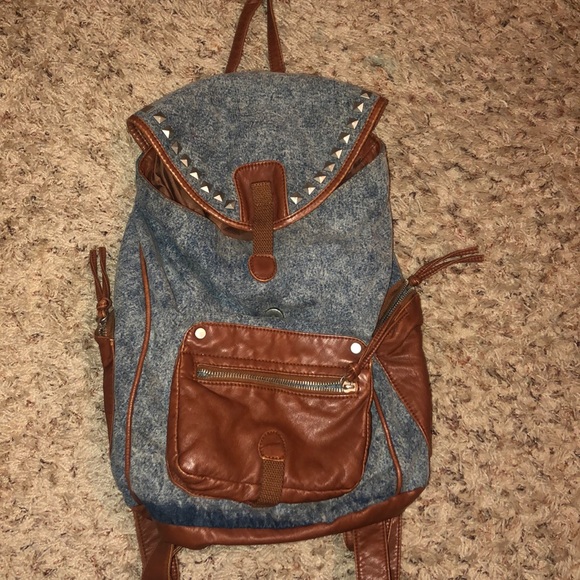 this backpack has 4 spaces to put items, a usual big opening, two small ones on the side as well as a small one on the front. The detail is a jean detail with brown leather.