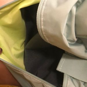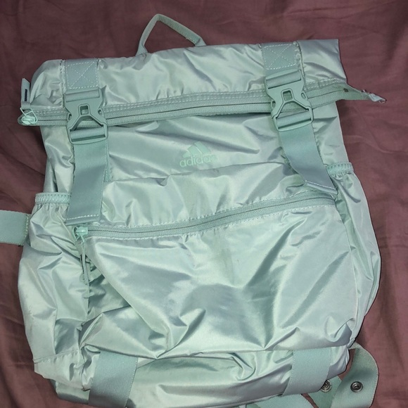 Adidas yoga backpack with adjustable straps on bottom to fit yoga mat. I would put a blanket there because it fits perfectly.
