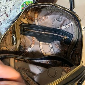 Cute black backpack small/medium sized. Vegan leather. Double zipper on top.