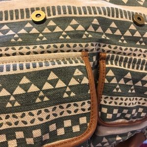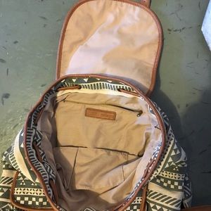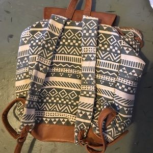 Patterned backpack up for grabs! Light weight easy to travel with.