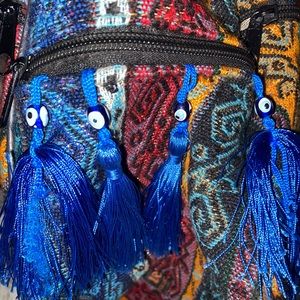 Different from any other backpack with great colors and unique great for a concert, travel, or for you daily use. Zipper on the back with a triangular shape