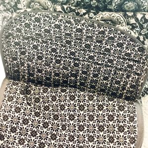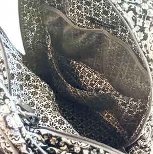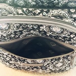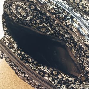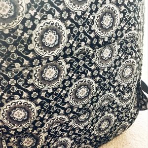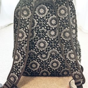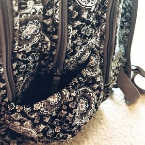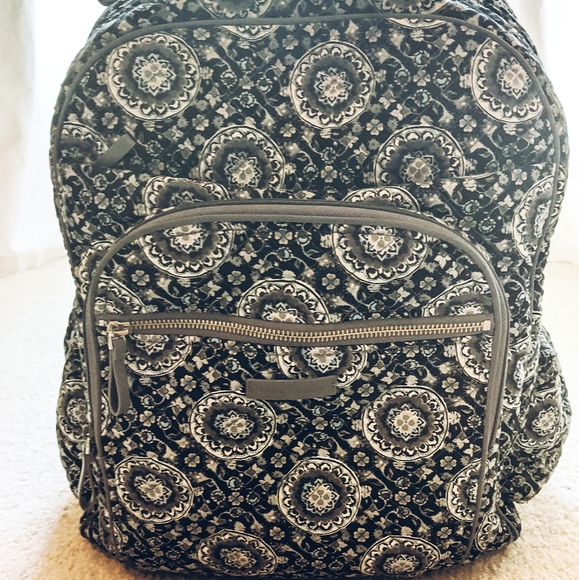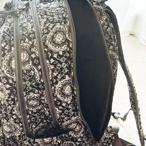 This is a Vera Bradley backpack. It was bought 6 months ago and barely used. There is a little bit of yellow tinting on one of the straps just from the sun. But nothing major.