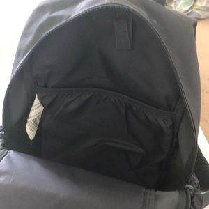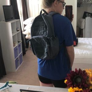 Perfect for school or for traveling! Has two pouches on sides to carry water bottles, the straps are cushioned for wearing, and it’s large zipper allows easy access inside pouch with a nice back sleeve area to hold 13in laptop or any other devices. Straps have a buckle that sits nicely on waist if using this for a hike or need to clip onto your suitcase. Like new condition, no stains, non-smoking and pet free home.