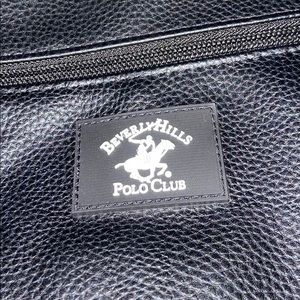 It has like a wrinkle on it, it’s unused and looks completely brand new. Kind of faux leather appearance. Several pouches including a laptop sleeve.
