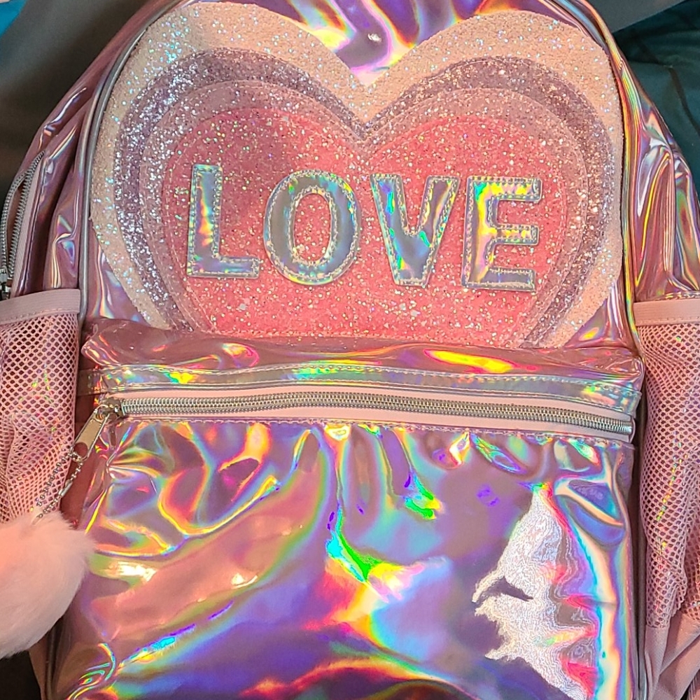 Pink metallic love heart backpack
