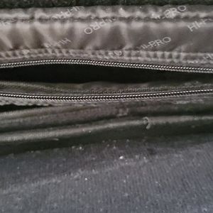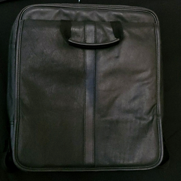 Black leather backpack, 14 1/2 inches wide, 15 inches tall, multiple inside compartments. Gently used. Unisex