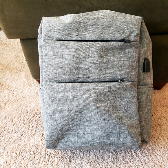 Great medium sized backpack. It has a padded pocket for your device and a USB charging port. Brand new, never used, no tags.