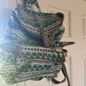 Mint green and white backpack.