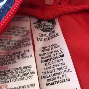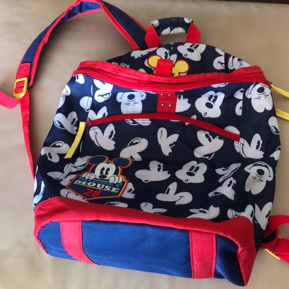 Navy with red trim and white Mickey Mouse. Bought at Disney store. New. Used once. Excellent condition.