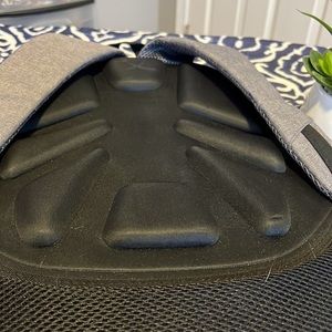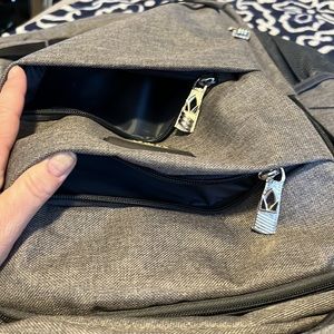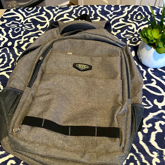 Backpack, gray, very padded back, several pockets. Only used a couple times.