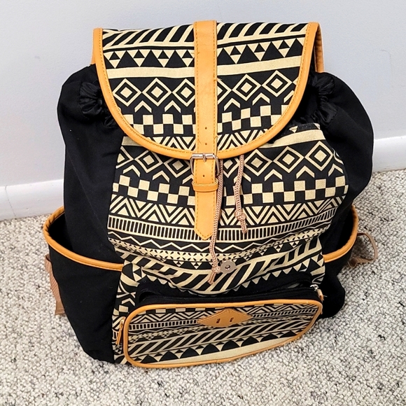 Beautiful african geometric design drawstring backpack. Large, roomy and lots of pockets to carry just about anything. No rips or stains. Smoke and pet free home. This bag has lots of life left for that special someone!