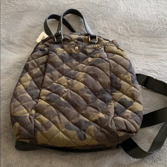 NEW with tags. Camo color backpack. Snap pocket in front, zip pocket in back. Zipper to close. Pocket inside.